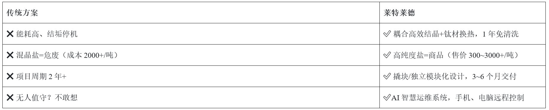 莱特莱德通过“膜法分盐+热法结晶”的耦合工艺,实现了精准分离: