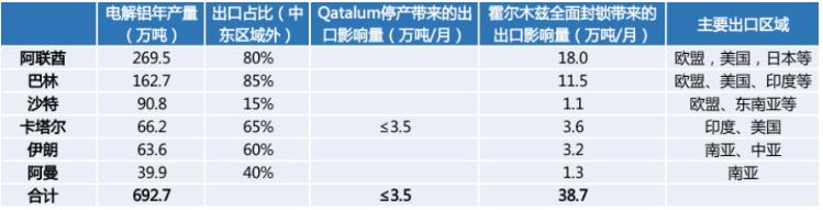 表为中东地区电解铝出口情况统计