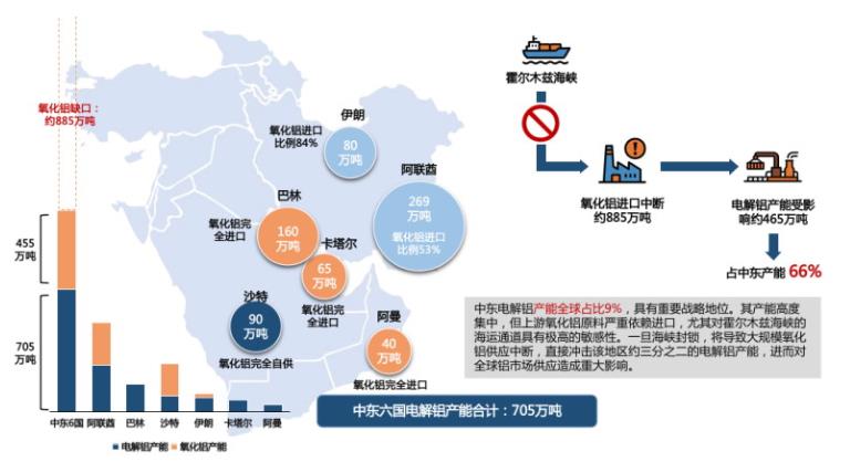 图为中东电解铝产业链概况与产能分布