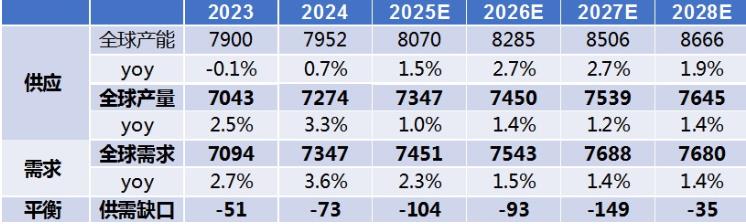 表为全球电解铝供需平衡表(单位:万吨)
