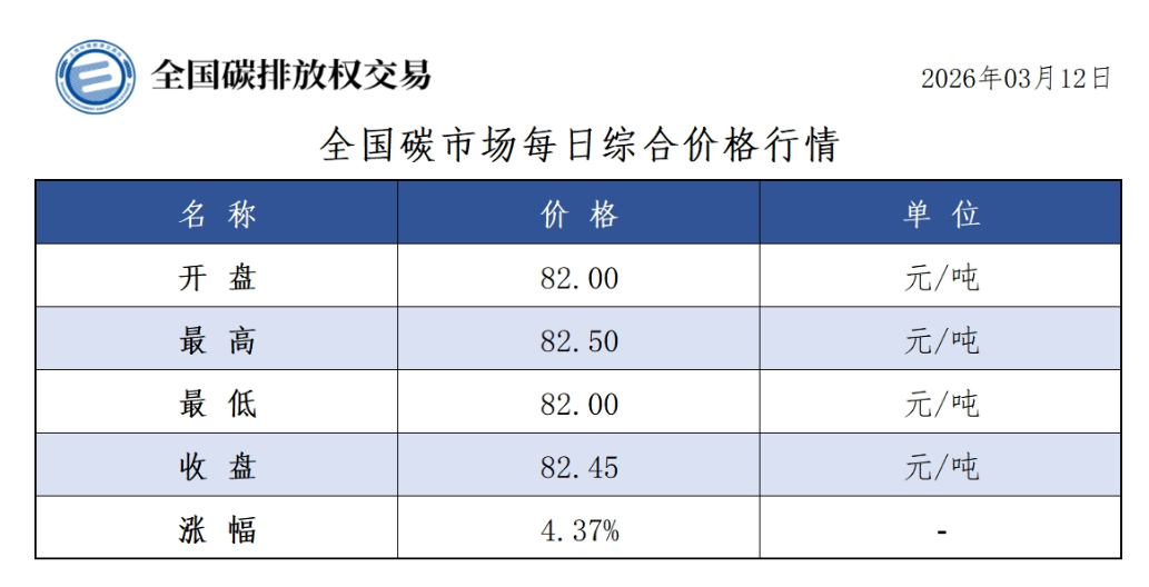 3月12日全国碳市场价涨4.37% 碳排放配额总成交633000吨【交易日报】