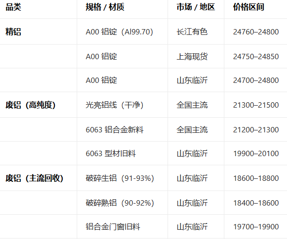 3月16日铝现货主流报价参考