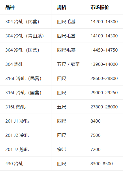 3月17日不锈钢现货报价参考