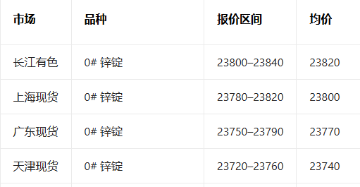 3月17日锌现货报价参考