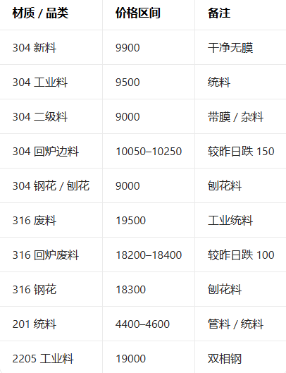 3月19日不锈钢现货主流报价