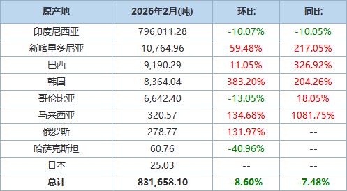 以下为根据中国海关总署官网数据整理的2026年2月镍铁进口分项数据一览表: