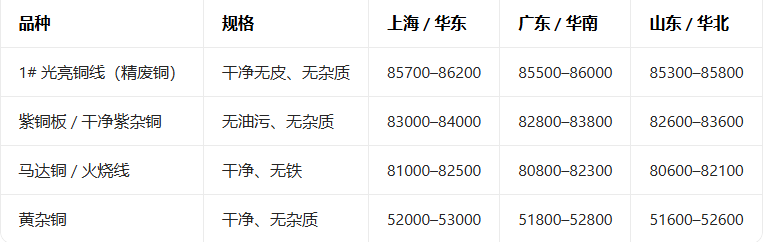 3月27日主流地区精废铜现货报价
