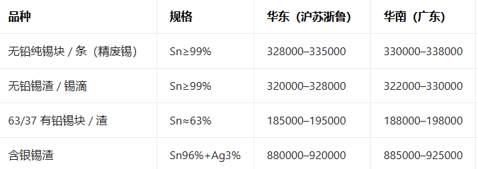 3月27日主流地区精废锡现货报价
