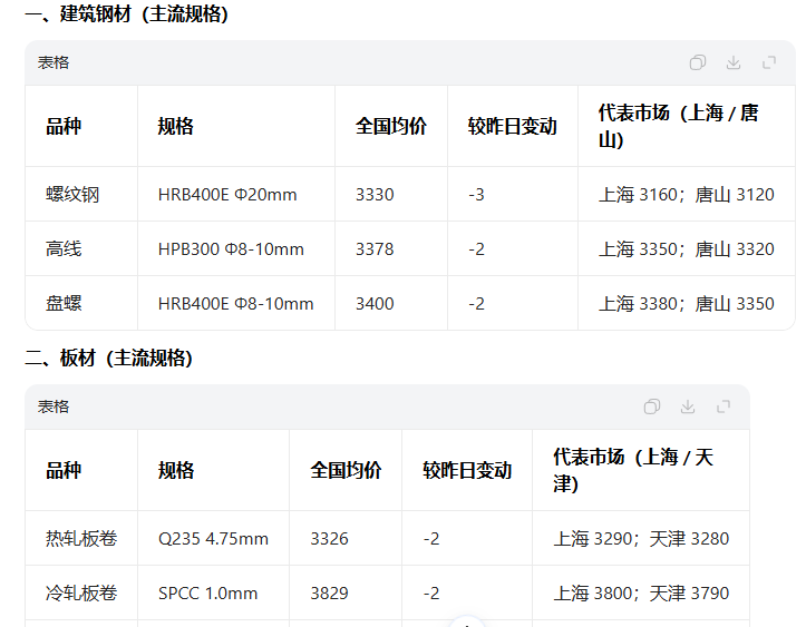 钢材现货今日价格参考