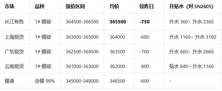 4月3日全国锡现货报价参考