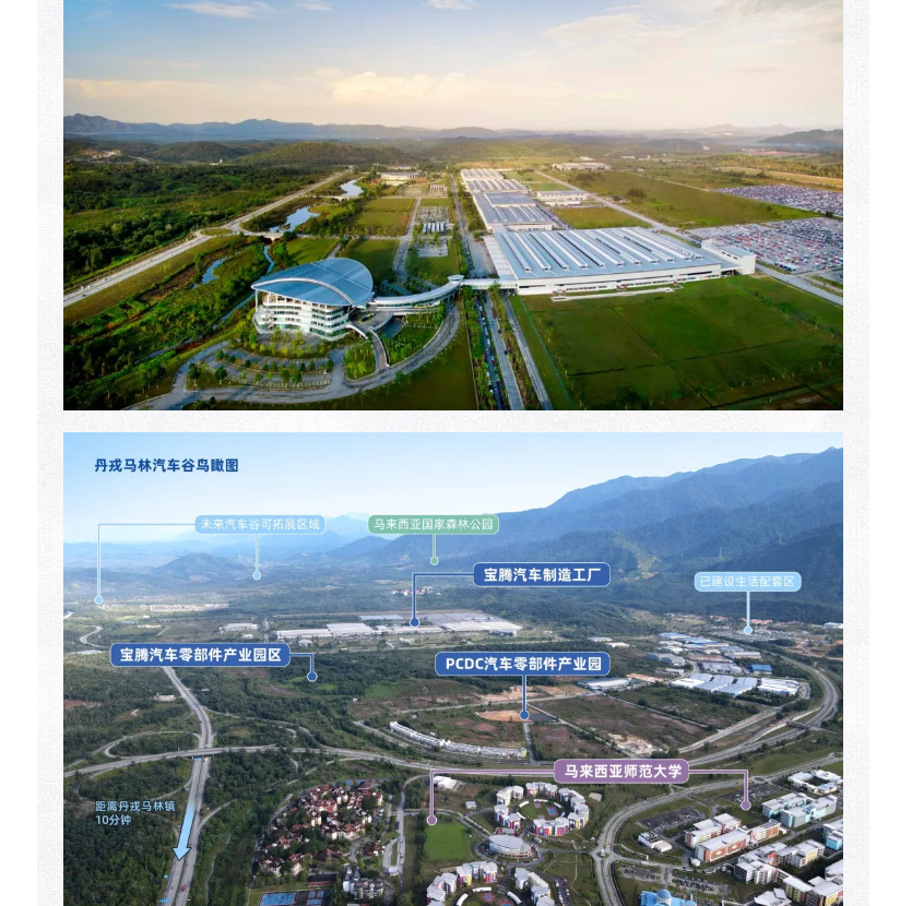 丹戎马林汽车高科技谷(Automotive Hi-Tech Valley, AHTV) 是马来西亚国家级汽车产业战略枢纽,坐落于霹雳州丹戎马林,距吉隆坡仅 50 分钟车程,占地约4000 英亩。作为“一带一路” 与马来西亚 “2030 年新工业蓝图”的标杆项目,由吉利控股与 DRB-HICOM 集团联手打造。园区以新能源汽车(NEV)与下一代智能汽车(NxGV)为核心,集智能制造、研发创新、核心零部件供应链、人才教育于一体。园内已建成马来西亚首座纯电动整车工厂(宝腾 e.MAS 系列),首期年产能4.5 万辆。计划至2035 年形成50万辆整车产能与100 万套零部件供应体系,半数产品出口全球。AHTV 凭借工业 4.0 标准、完整产业链生态与东盟区位优势,正崛起为面向全球的右舵车制造与新能源汽车出口中心,是中马产业合作与区域产业升级的典范。