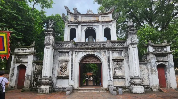 建于 1070 年(李朝),是越南供奉孔子的最高等级庙宇,也是越南第一所国立大学(国子监设于 1076 年),专为皇室与贵族子弟授课,绵延近千年。建筑群为典型中式风格,五进院落、红墙绿瓦、飞檐斗拱,规制与中国文庙高度相似。核心看点是82 座石龟驮载的进士碑(世界记忆遗产),镌刻 1442-1779 年间中举进士姓名,是越南科举与教育史的见证。奎文阁(八角楼)是河内市标,典雅庄重。整体氛围宁静肃穆,处处可见汉字匾额与石雕,是中越文化交融的典范。