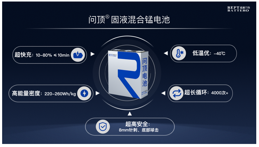 在补能效率持续提升的同时,动力正加速向更高能量密度与更高安全性能迈进。面对液态电池与全固态电池在发展阶段的差异,瑞浦兰钧推出问顶®新型固液混合电池技术平台,通过材料体系与结构设计的融合创新,构建了锰基与高镍双体系产品布局,以满足不同应用场景对性能、安全与成本的差异化需求。